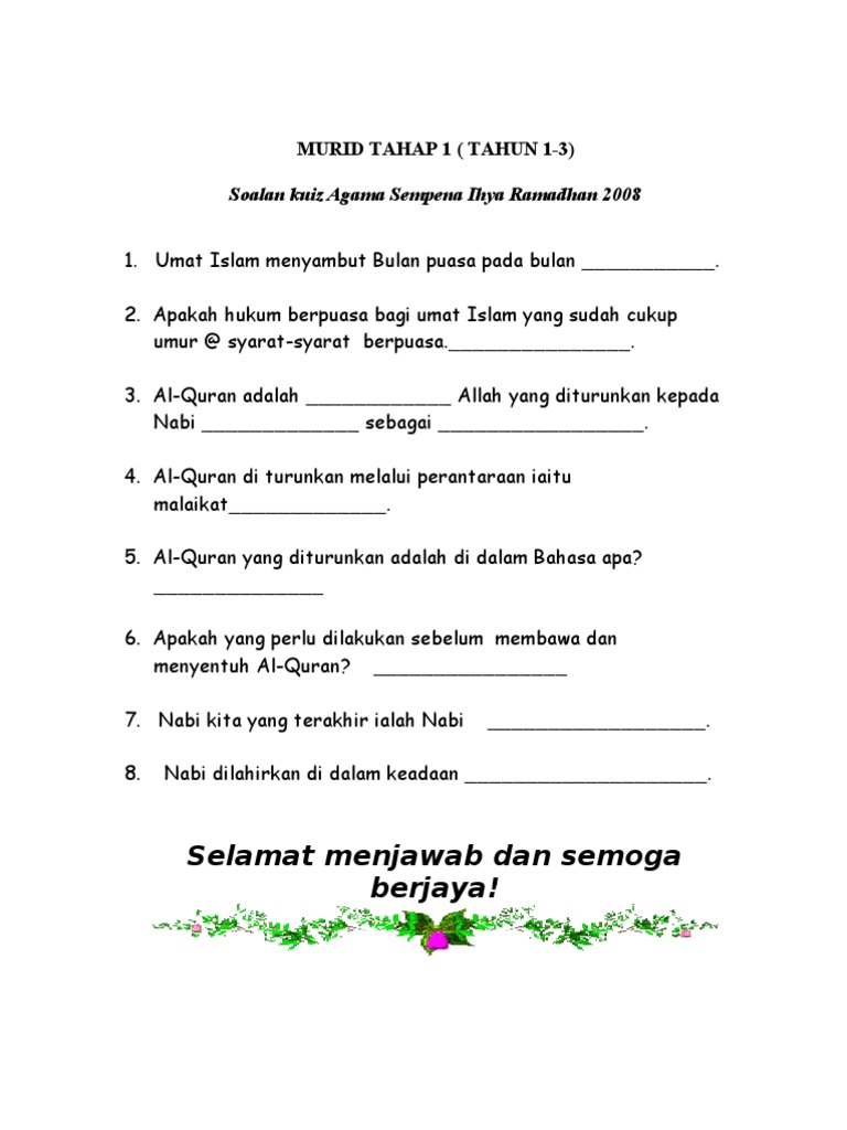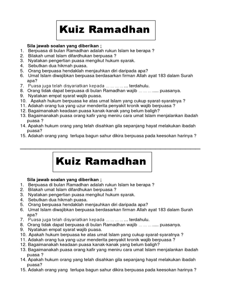 Senarai Kuiz Ramadhan Yang Penting Dan Boleh Di Cetakkan Dengan Segera Contoh Resume Cover Letter Curriculum Vitae Terbaik